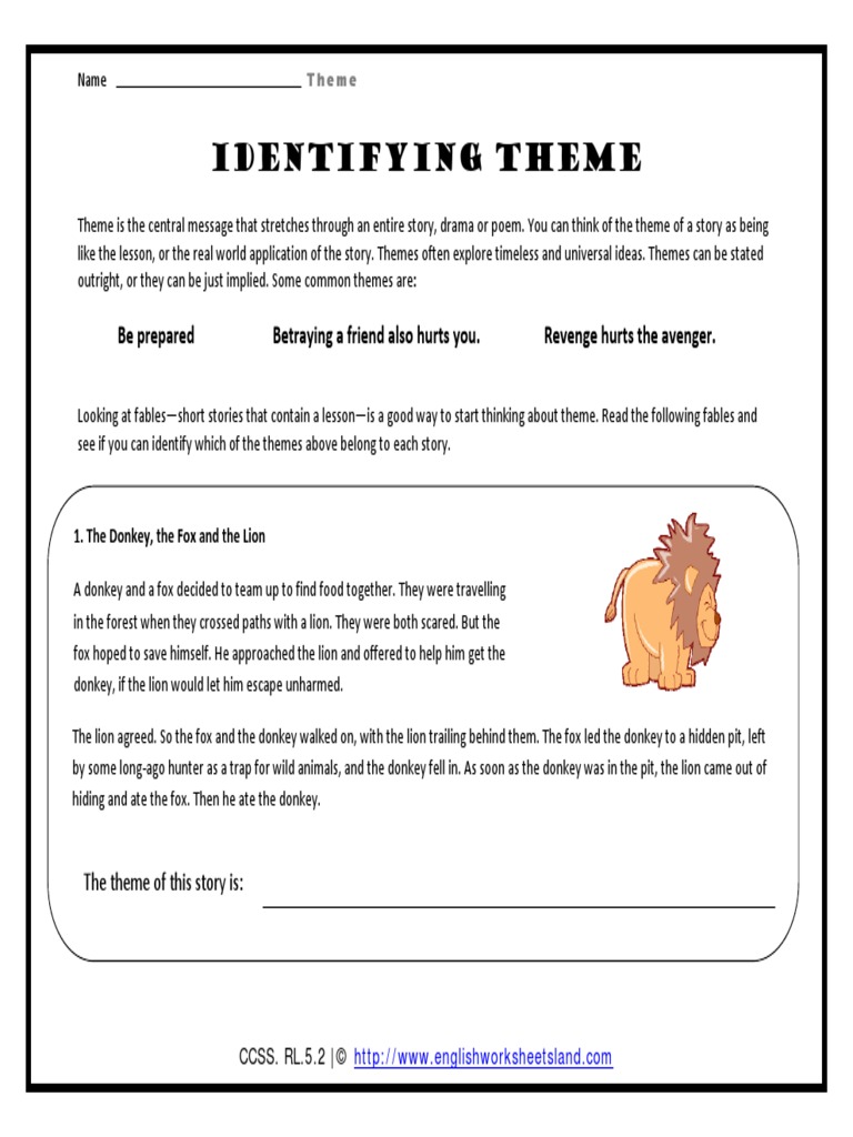 Englishworksheetsland Identifying Theme